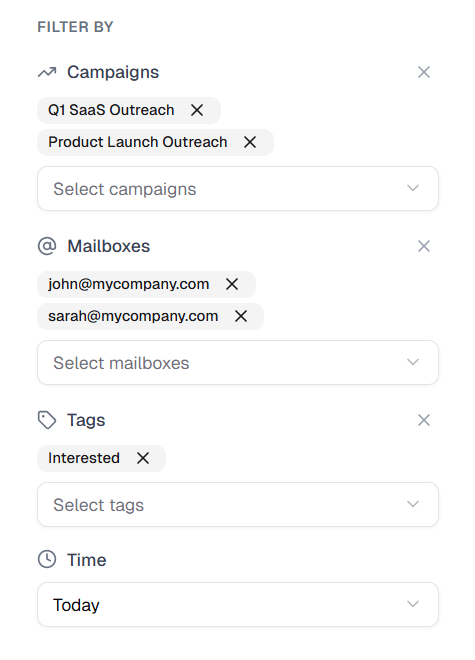 PenguinMails brings every reply into a single inbox. You can filter by campaign, mailbox, or tag.